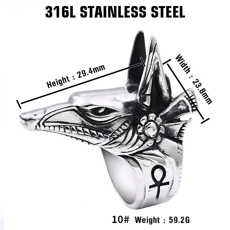 - Product name : BEIER Stainless Steel Egypt Cross Anubis God Finger Rings For Men Punk Wolf Head Knuckle Ring State