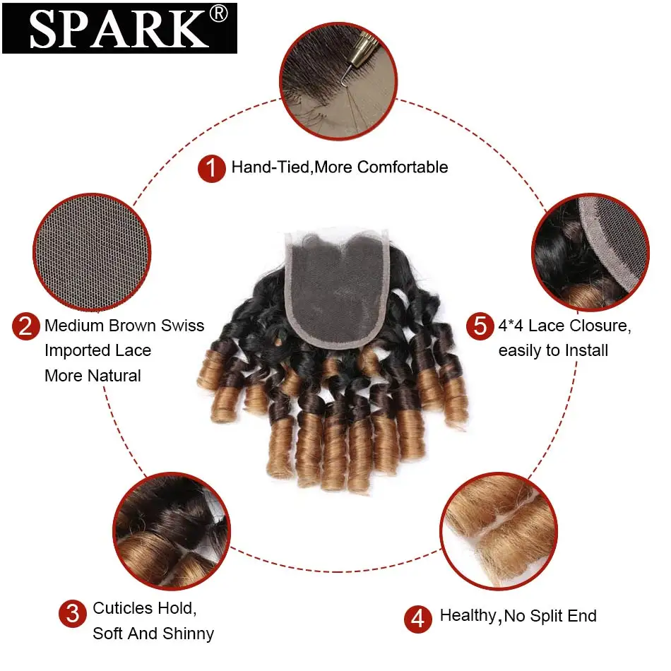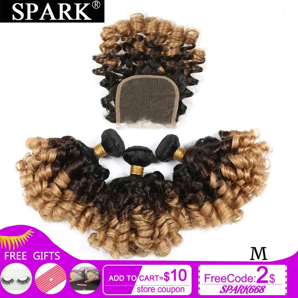 SPARK Human Hair Ombre Loose Bouncy Curly Bundles With Closure Brazilian Hair Weave Bundles With Closure Human Hair Extensions : Click Here
