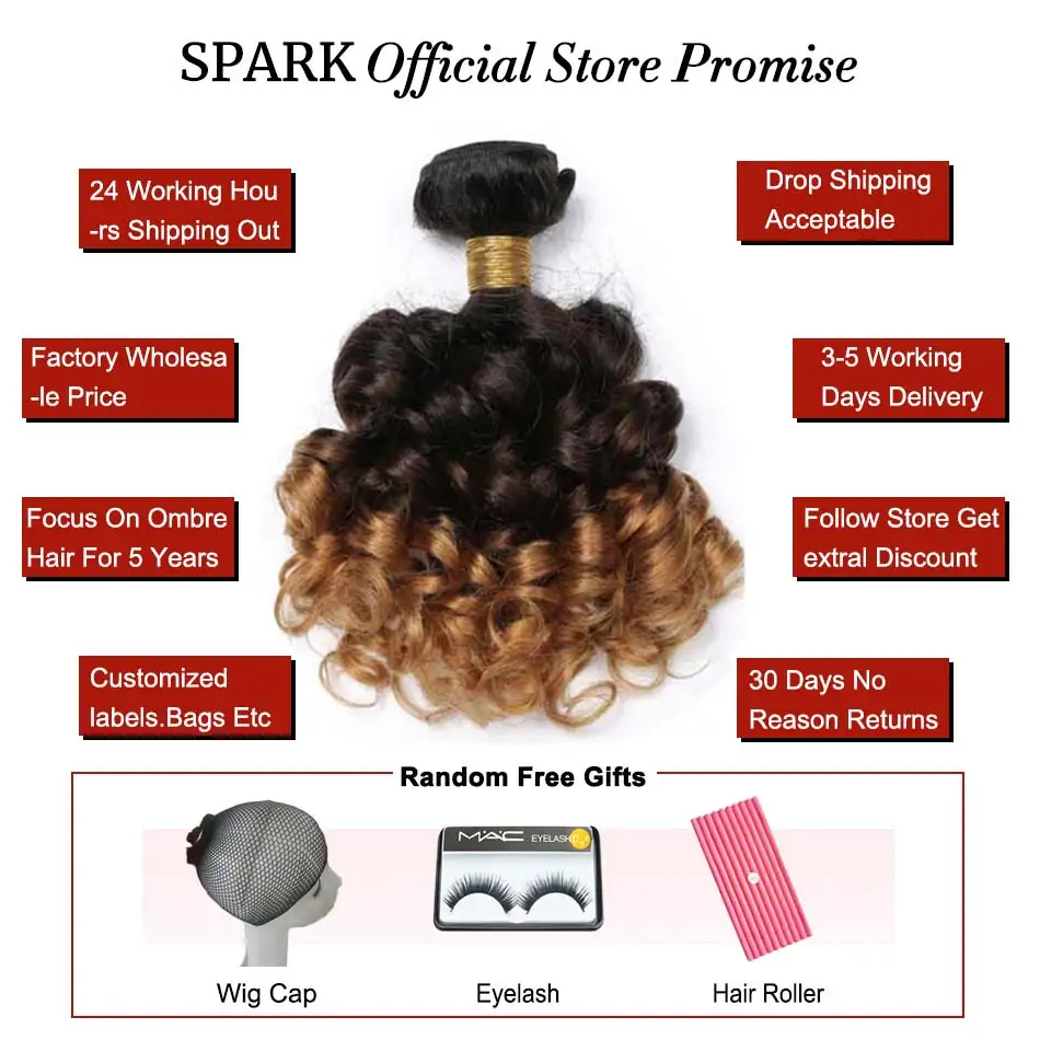 Spark Brazilian Bouncy Curly Human Hair Bundles 1/3/4pcs Ombre Medium Ratio Remy Human Hair Extensions Curly Hair Weave Bundles : Click Here