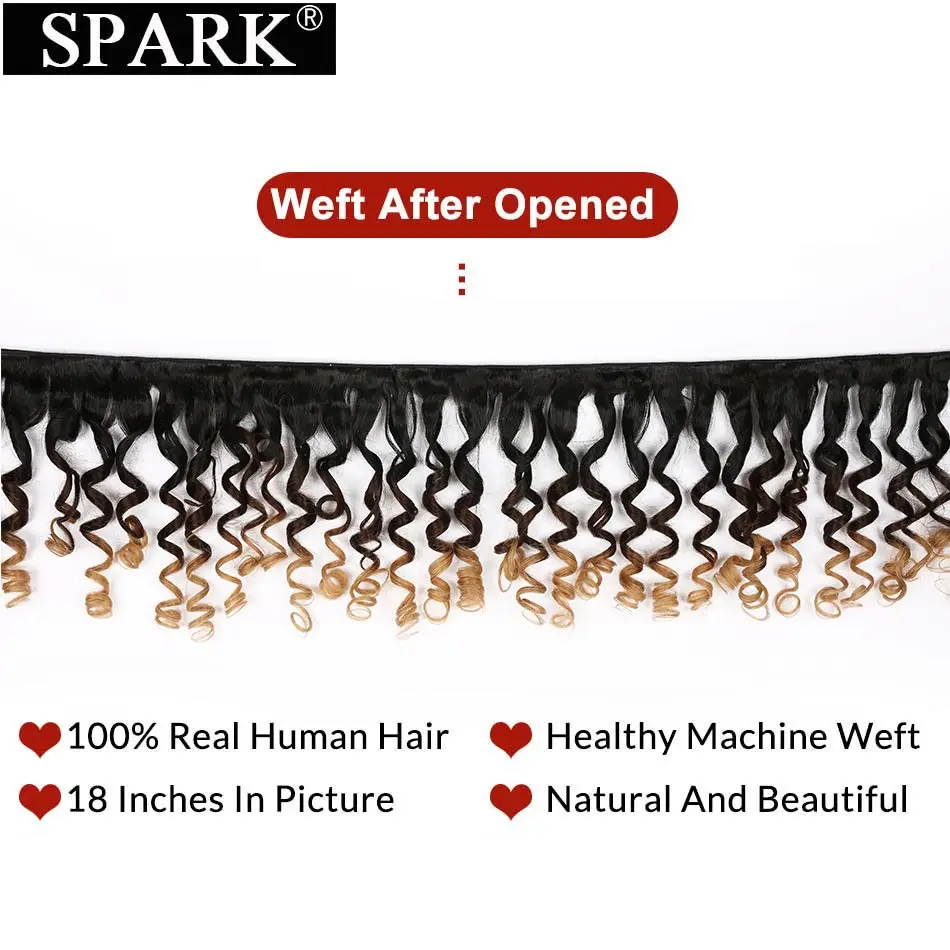 - Product name : Spark Loose Bouncy Curly Ombre Brazilian Hair Human Hair Weave 3 Bundles With Closure Remy Human Ha